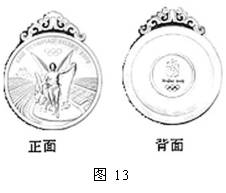 33、图13是我国设计的北京 奥运会奖牌,奖牌正面为国际奥委会统一规定的图案,奖牌背面镶嵌着取自中国的玉石,形象诠释了中华民族自古以来以“玉”比“德”的价值观,是中华文明与奥林匹克精神的一次“中西合璧”。奖牌分为金牌、银牌和铜牌。其中金牌由纯银、玉石、纯金组成,金牌的总体积约为23cm3,镶嵌玉石的体积约为5.4cm3,纯金的质量约为6g。(已知:ρ玉=3.0g/cm3,ρ金=19.3g/cm3,ρ银=10.5g/cm3)。请问: