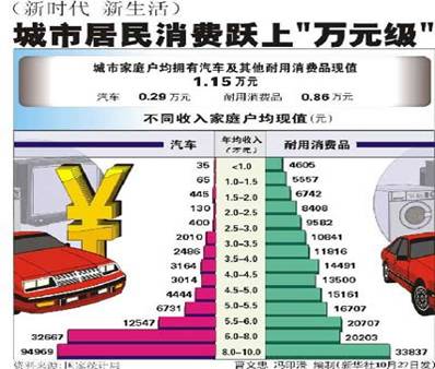 (1)改革开放三十年来,我国经济保持平衡快速发展,国内生产总值年平均增长9.7%,经济效益明显提高。我国经济实力和综合国力上了一个大台阶。GDP从占世界1.8%升至6%,成为仅次于美国和日本的世界第三大经济体。