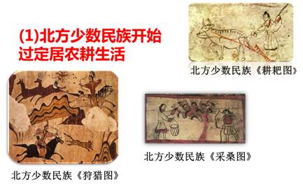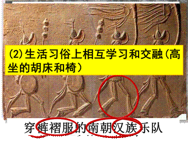 2)生活方式:汉族接受北方民族的食物、服装、用具等。