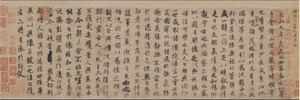 东晋永和九年(公元353年)农历三月初三,王羲之曾在会稽山阴的兰亭(今绍兴城外的兰渚山下),与名流高士谢安、孙绰等四十一人举行风雅集会。与会者临流赋诗,各抒怀抱,抄录成集,大家公推王羲之写一序文,记录这次雅集,即《兰亭集序》。全文共28行,324字,文章清新优美,书法遒劲飘逸。后人誉之为“天下第一行书”。千百年来成为书法家们心摹手追的经典范本。