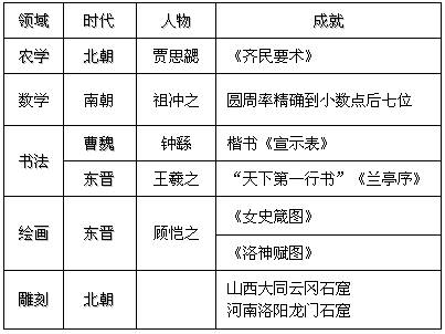 魏晋南北朝时期科学技术成就取得的原因: