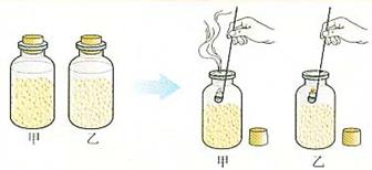 现象:甲瓶内蜡烛迅速熄灭,乙瓶内还会燃烧一会儿。