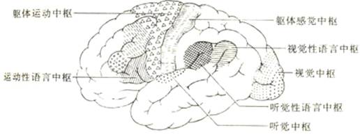 (3)视觉中枢、语言中枢、躯体运动中枢