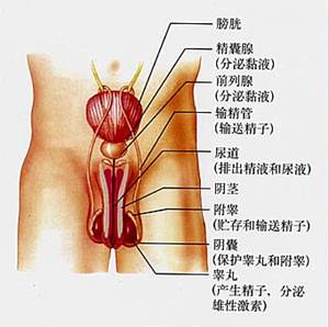 男性生殖系统中最重要的器官是睾丸(它不仅能产生精子,还能分泌雄性激素)。