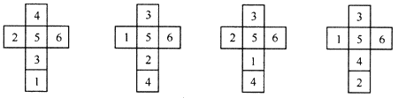 1、如图所示,一个正方形纸盒的六个面上分别印着1、2、3、4、5、6,并且相对面上的两数之和为7。它的表面展开图可能是( )