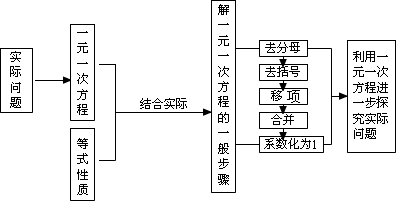 1、在解一元一次方程时,按照移项法则,可以把方程中含有未知数的项(即未知项)集中在方程的一边(通常是在左边),而把常数项集中在另一边.然后通过合并同类项,就可以把方程化成ax=b(a≠0)的形式.要灵活安排各个步骤的次序(不一定每个步骤都要用到),这样往往可使计算简便.在整个求解过程中,要注意避免去分母、去括号、移项时易犯的错误.