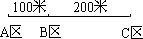 设在A区时,距离和为100×15+(200+100)×10=4500米,设在B区时距离和为100×30+10×200=5000米,设在C区时,距离和为(100+200)×30+200×15=12000米.
