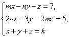 1、已知x=2,y=-1,z=-3是三元一次方程组 的解,求m2-7n+3k的值.