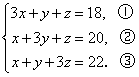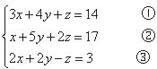 15、有甲、乙、丙三种货物,若购甲3件,乙7件,丙1件,共需3.15元,若购甲4件,乙10件,丙1件,共需4.20元,现在购甲、乙、丙各1件,共需多少元?