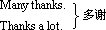 Thank you. 谢谢你。(语气比thanks重、正式,用于对长辈、老师等)