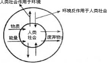 一方面人类的生存和发展要占据一定空间,并从环境中获取物质和能量。人类的新陈代谢和消费活动的产物要排放到环境中。另一方面环境也会把它所受到的影响反作用于人类。人类对资源的索取速度不超过资源及代替品的再生速度,排放废弃物不超过环境自净能力,环境对人类的影响为正面影响,反之就会出现环境问题。如图所示: