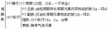 核外电子排布和周期表的关系:周期表有7个横行,表示7个周期;18个纵行。从左到右,各主、副族元素的排列顺序已在元素的分区示意图中反映出来。通常把周期表的各副族元素和第Ⅷ族元素叫过渡元素。除零族外,周期表共有三大部分:主族元素,在表中左右两端。过渡元素,在表的中部。镧系、锕系在表的底部。