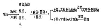 原理:高级脂肪酸钠难溶于无机盐溶液,且密度小于无机盐溶液。加入无机盐可降低高级脂肪酸钠在水中的溶解度,从而使它析出,该过程是可逆的。