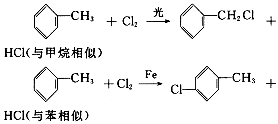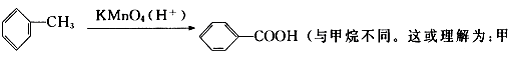甲苯是苯的同系物的代表物.它既可看作甲基取代苯环上氢的产物,又可看作苯基取代甲烷中氢的产物.因此应兼有甲烷和苯的化学性质.但还应考虑到甲苯分子中,甲基和苯环是互相影响的,使甲苯又有与甲烷、苯的性质不相同之处.如