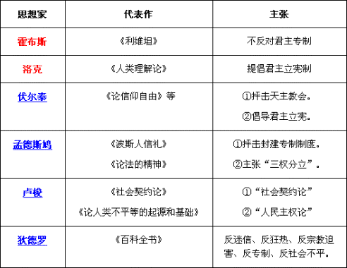 (一)、学习法国启蒙思想时,要求分别掌握伏尔泰、孟德斯鸠和卢梭的思想主张,进而归纳概括他们思想的共性。