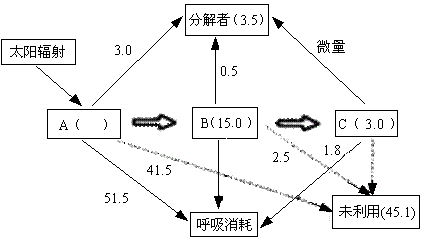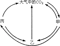 15、下图是自然界碳循环的简图,图中的甲、乙、丙各代表( )
