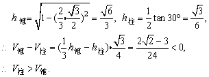 (2)试比较你剪拼的正三棱锥与正三棱柱的体积大小;
