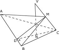 例2、已和VC是△ABC所在平面的一条斜线,点N是V在平面ABC上的射影,且在△ABC的高CD上,AB=a,VC与AB之间的距离为h,点M∈VC,如图.