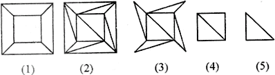 (2)在网络中的多边形数若大于3,由于每增加一条对角线,则E,F各加上1,V-E+F不变,于是尽可能增加对角线,使网络成为全由三角形组成的网络,如图(2).