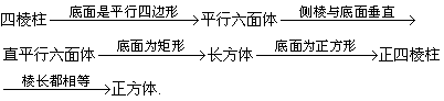②面的性质:侧面是平行四边形,两个底面平行且是全等的多边形;