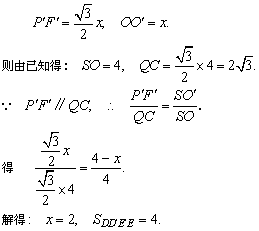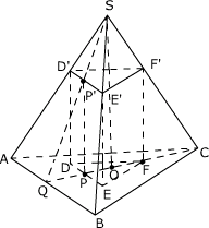 作SO⊥面ABC于O,交面D′E′F′于O′点,得截面SQC.