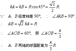 分析:求A、B两地的球面距离,主要求AB两地的球心角大小.
