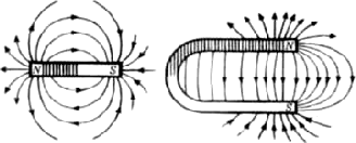 条形磁铁和蹄形磁铁是两种最常见的磁体,如图所示的是这两种磁体在平面内的磁感线形状,其实它们的磁感线分布在整个空间内,而且磁感线是闭合的,它们的内部都有磁感线分布。