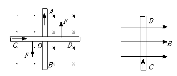 据电流元分析法,把电流CD等效成CO、OD两段电流.由安培定则画出CO、OD所在位置的AB电流的磁场,由左手定则可判断CO、OD受力如图15-2-4,可见导线CD逆时针转动.