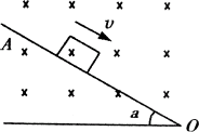 例2、如甲图所示,OA是一光滑、绝缘斜面,倾角为θ,一质量为m的带电体从斜面上的A点由静止开始下滑,如果物体的带电量为+q,整个装置处于垂直纸面向里的磁感应强度的大小为B的匀强磁场中,试求当物体离开斜面时,物体运动的速率及其沿斜面下滑的距离?(斜面足够长)
