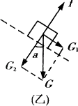 物体刚离开斜面时,对斜面的压力为零,物体受到斜面的支持力为零,受力分析如图乙,f=G2,以此可求速度v,下滑时由于洛仑兹力不做功,势能转化为动能,物体下降的高度h可以求出,物体下滑的距离