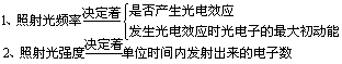 ②光电子最大初动能与入射光的强度无关,只随入射光频率的增大而增大。
