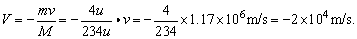 例4、一个静止的铀238原子核射出一个速度为1.17×106m/s的α粒子,求: