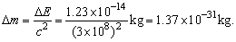 △m=2m0-(mHe+mn)=(2×2.0136-3.0150-1.0087)u=0.0035u.