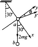 以a、b整体为研究对象,由于a所受绳的张力不需求出,取绳的方向为x轴,与绳垂直的方向为y轴,并设F与y轴夹角为θ,如图所示