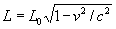 在车厢里的人看来,车厢是不动的,而地面以速度v朝反方向运动,他测得杆的长度
