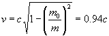 称为静止质量,m为相对质量,可见当v接近c时,质点质量m变得很大,趋向无限.欲使之再加速就很困难,这就是一切物体的速率都不可能达到和超过光速的动力学原因.物理学家曾用电子和质子做过实验,结果同狭义相对论的质量和速度关系是相符合的.