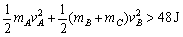 (1)当A、B、C三者的速度相等时弹簧的弹性势能最大,由于A、B、C三者组成的系统动量守恒,有(mA + mB)v =(mA + mB + mC)vA