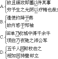 5、以下句子分别编为四组,全都表现田单“兵不厌诈”手段的一组是( )