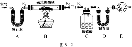 19、(7分)碱式碳酸镁有多种不同的组成,如:Mg2(OH)2CO3、Mg4(OH)2(CO3)3、Mg5(OH)2(CO3)4等。某研究性学习小组的同学们为了确定某碱式碳酸镁的组成,设计了如图8-2所示的实验装置。