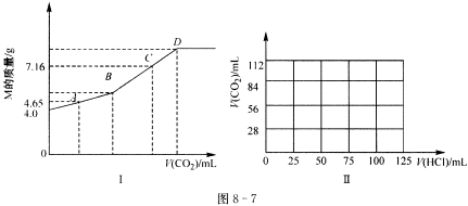 (4)取组成为A点的白色固体 ,向其中逐滴加入0.1mol·L-1 HCl溶液,请在图8-7Ⅱ中画出产生CO2气体体积(标准状况下)与所加入的盐酸的体积关系。