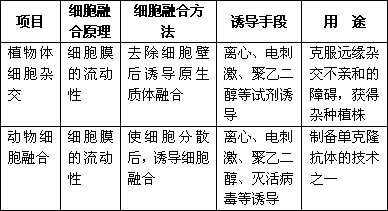 (2)植物细胞融合过程中,首先要去除细胞壁,制备原生质体,而动物细胞无细胞壁,可直接诱导融合。