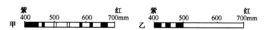 13、下图表示叶绿体中色素的吸收光谱(颜色深、浅分别表示吸收量的多、少),甲、乙两图分别是( )