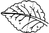 20、将一株植物在黑暗环境中放置48h,然后将一叶片的主脉切断,如下图所示,在阳光下照射4h,将此叶片脱色处理后,再用碘液处理,结果a部呈棕褐色,b部呈蓝色,这个实验验证光合作用需要( )