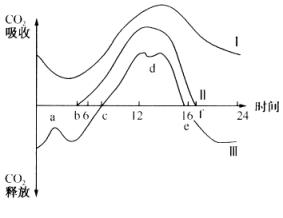 A.在Ⅲ曲线与时间轴交点c和e时,光合作用吸收的CO2和呼吸作用释放的CO2量相等