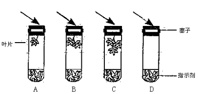 30、如下图所示,4支试管中盛有等量的指示剂(中性呈红色,酸性呈蓝色),在弱光照射下,试管中的指示剂由红转蓝速度最快的是( )