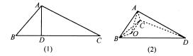 14.在平面几何里有射影定理:“设△ABC的两边AB⊥AC,D为A点在BC边上的射影,则AB2=BD·BC”(如图5(1)).拓展到空间,在四面体ABCD中,设DA⊥平面ABC,点O为点A在平面BCD内的射影,且O点在△BCD内(如图(2)).类比平面几何的射影定理,△ABC、△BOC和△BDC三者的面积之间的关系是___________.