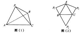 16.如图,将三棱锥P-ABC(图1)沿三条侧棱剪开后,展开如图(2)的形状,其中P1、B、P2共线,P2、C、P3共线,且P1P2=P2P3,则在三棱锥P-ABC中,PA与BC所成的角为__________.