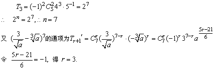 要求 的展开式中a-1项的二项式系数,首先要由已知条件确定n.另外应注意展开式的各项系数之和的求法——“赋值法”以及特定项的求法.