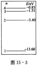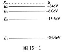 3、氢原子的能级图如图15-2所示,欲使一处于基态的氢原子释放出一个电子而变成氢离子,该氢原子需要吸收的能量至少是( )