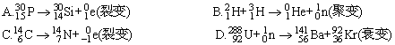 15、下列核反应方程式所表示的核反应类型,括号中判断正确的是( )